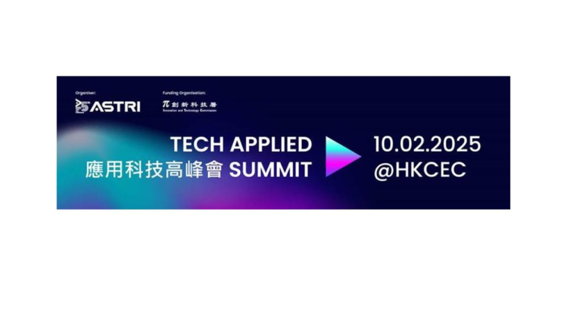 On behalf of the Hong Kong Applied Science and Technology Research Institute (ASTRI), I would like to cordially invite you to attend Tech Applied Summit, to be held on 10 February 2025 (Monday) at the Hong Kong Convention and Exhibition Centre. The Summit is proudly funded by the Innovation and Technology Commission of the HKSAR Government and fully supported by a wide range of stakeholders from the government, industry, academia, and research sectors.